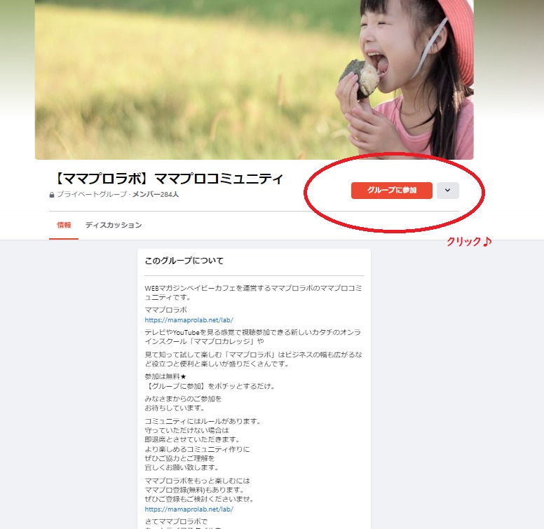 参加は『グループに参加』をポチっとするだけで始まります。
